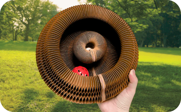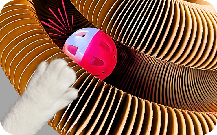 Une piste circulaire infinie où la balle tourne sans jamais s’échapper — de quoi stimuler son instinct de jeu en continu.