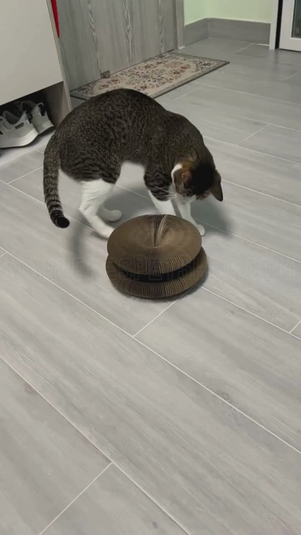 Le griffoir est pliable et modulable, il s’adapte à votre intérieur selon vos besoins : forme ronde, plate, en U ou repliée.